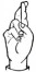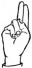 На ћирилици написано ХРАНИМИР ДУБОВАЦ састоји се из 15 слова [?]. Исписано ћириличном једноручном азбуком за глувонеме: